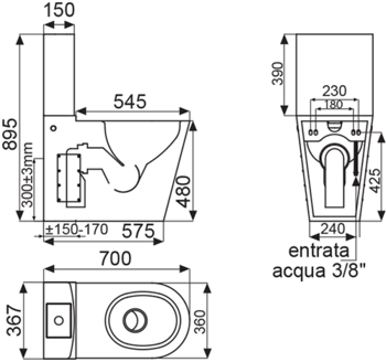 Wc monoblocco disabili a pavimento stampato con cassetta applicata