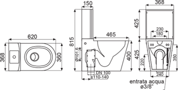 Wc monoblocco a pavimento stampato con cassetta applicata