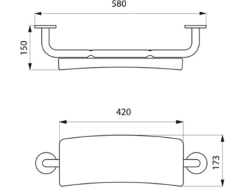 Dimensioni: L mm 580 - H mm 173 - P mm 150