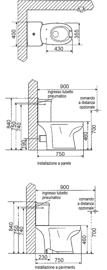 Scarico: parete / pavimento (vedi accessori)