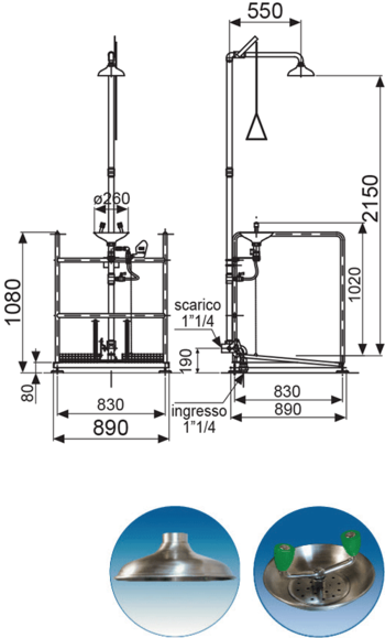 - Soffione e vaschetta in polipropilene o in acciaio inox