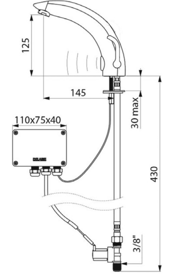 Rubinetto miscelatore elettronico a bordo lavabo con trasformatore