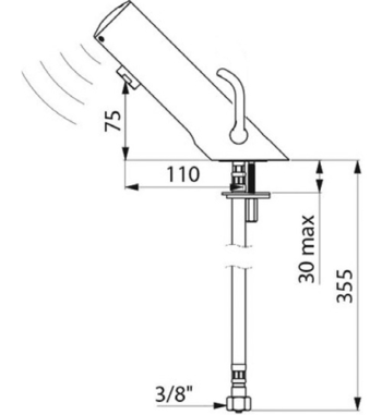 Rubinetto miscelatore elettronico bordo lavabo con batteria integrata