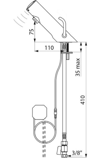 Rubinetto miscelatore elettronico bordo lavabo con trasformatore