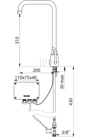 Rubinetto miscelatore elettronico bordo lavabo con trasformatore