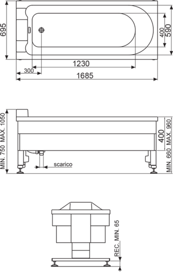 - Dimensione: mm 1.685 L x 695 P x 620 ÷ 920 H